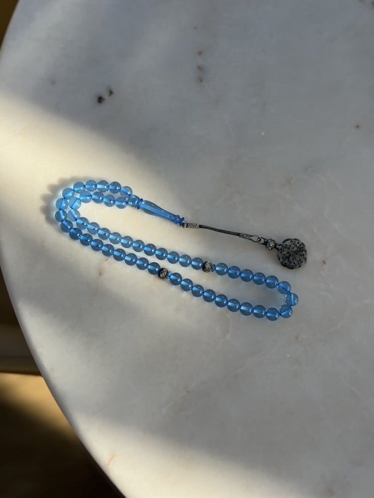 سبحة البكلايت تزينها طرابزونة وفواصل الفضة بعيار 1000 من خامة راقية وخراطة يدوية تمتاز بخفة الوزن مناسبة للاستعمال اليومي والعملي. حيث تعتبر البكلايت من أفضل المسابح والأكثر انتشارا نظرا لألوانها الباهية والأشكال الراقية كما تمتاز بقوة الخيط المتين والمحافظة على اللون ومقاومة الحرارة.