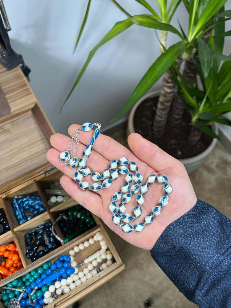 يتميز المسباح بلمعانه الفضي الجذاب ولمساته الفاخرة، مع نقوش هندسية تعزز من جماليته، كما أنه مزود بـ طربزونة فضة أنيقة تمنحك إحساسًا بالفخامة في كل استخدام.
